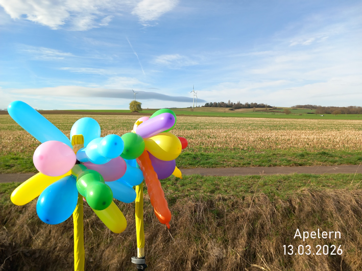 „Wir haben heute eine Spontanaktion an der geplanten Neubaustrecke durchgeführt und wollten mit Heliumballons die Höhe darstellen. Leider gab es etwas zuviel Wind. Aber so hatten wir einen Eindruck, wie breit die Trasse sein wird.“